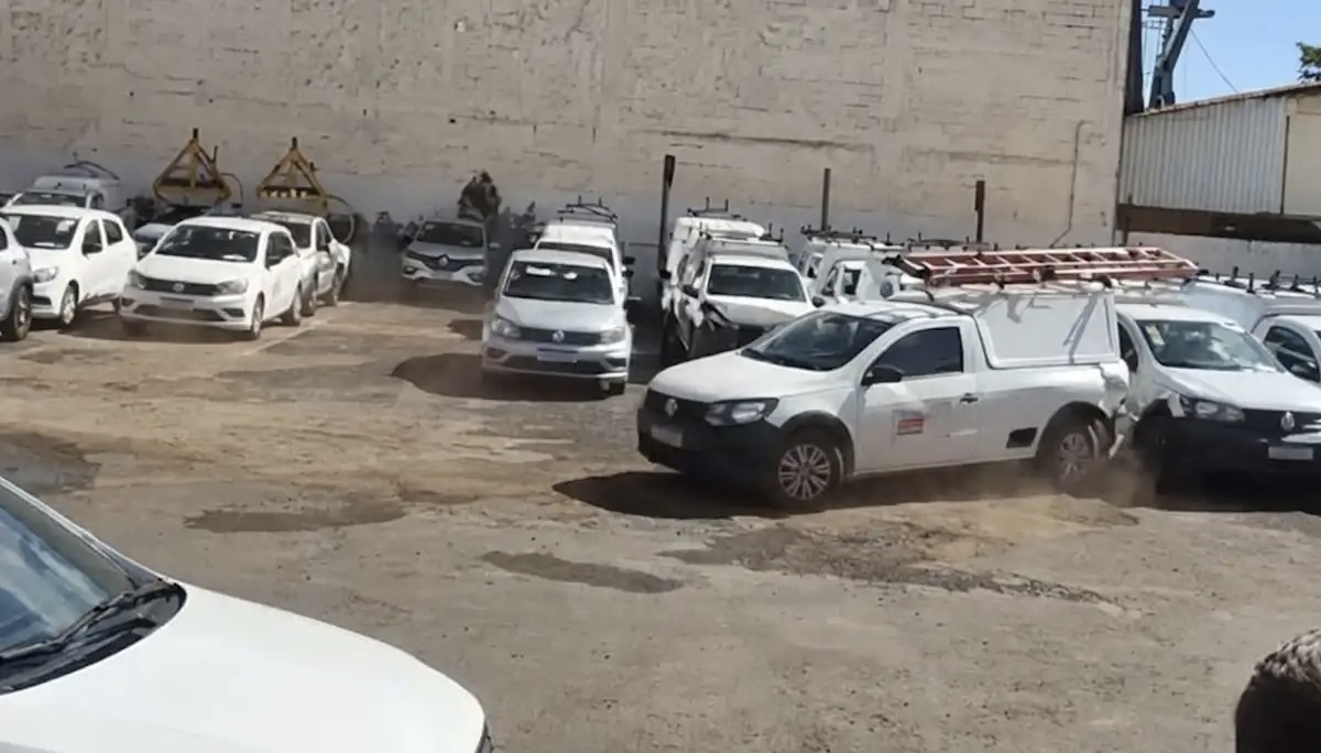 Nas imagens feitas por outros funcionários, é possível ver que o homem pegou um dos veículos da empresa e colidiu propositalmente contra diversos carros que estavam estacionados no pátio, além de derrubar o portão principal.