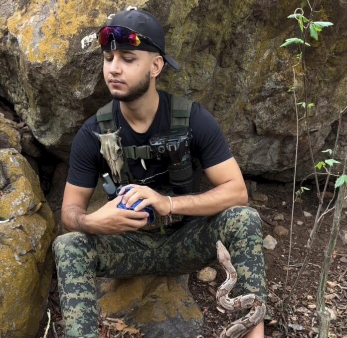 Nas imagens, ele explica que esse gesto pode ser importante, pois as serpentes percebem não apenas movimentos, mas também o calor emitido pela face humana.