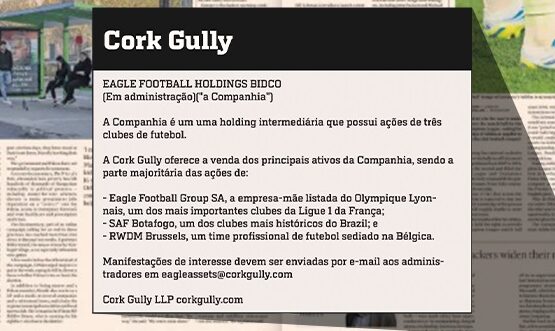 A nova administradora da Eagle Football, responsável pela SAF do Botafogo, a Cork Gully, anunciou nesta terça-feira (14), em publicação no jornal britânico Financial Times, que a SAF do clube carioca está à venda.