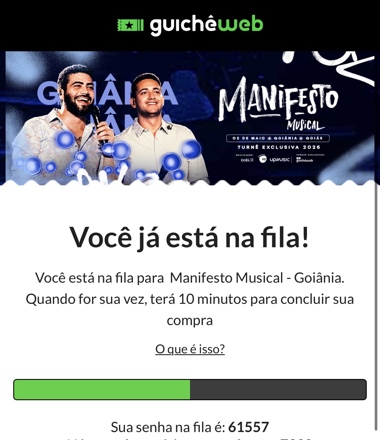 As vendas de ingressos para o show de Henrique & Juliano em Goiânia foram abertas nesta segunda-feira (12/1) e, em poucos minutos, já reuniam milhares de pessoas em uma fila virtual para garantir entrada no evento. A comercialização ocorre exclusivamente pelo site Guichê Web.